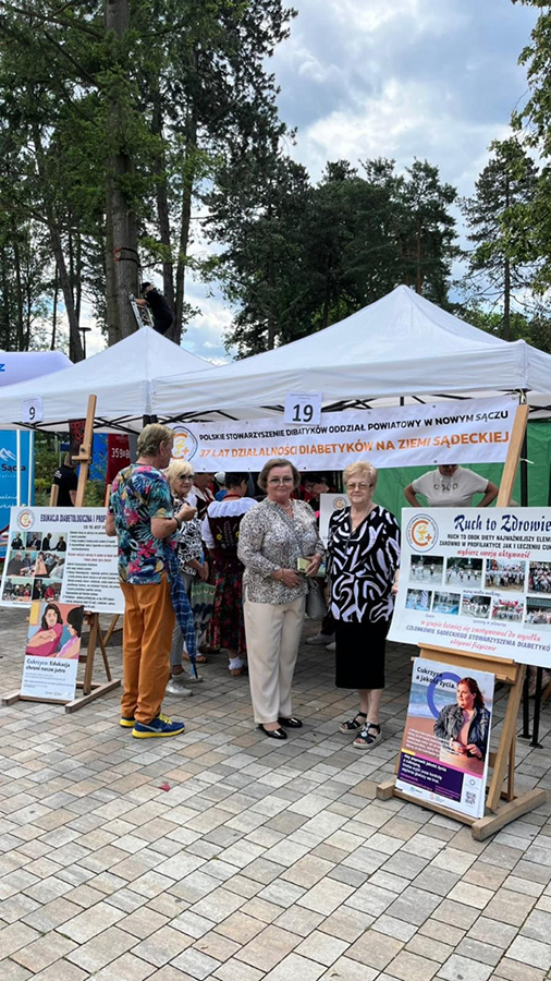Stoisko Polskiego Stowarzyszenia Diabetyków Oddział Powiatowy w Nowym Sączu zorganizowało między innymi 2 punkty pomiaru cukru oraz ciśnienia tętniczego - obsługiwane przez pielęgniarki dyplomowane udzielające instruktarzu na temat profilaktyki oraz samokontroli cukrzycy.