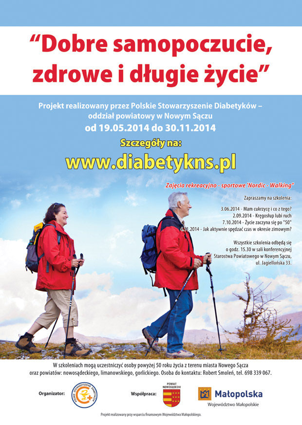 Polskie Stowarzyszenie Diabetyków Zarząd Powiatowy w Nowym Sączu serdecznie zaprasza naszkolenie "Mam cukrzycę i co z tego?", które odbędzie się we wtorek, 3 czerwca 2014 roku, o g. 15.30 w sali obrad Starostwa Powiatowego w Nowym Sączu, ul. Jagiellońska 33.